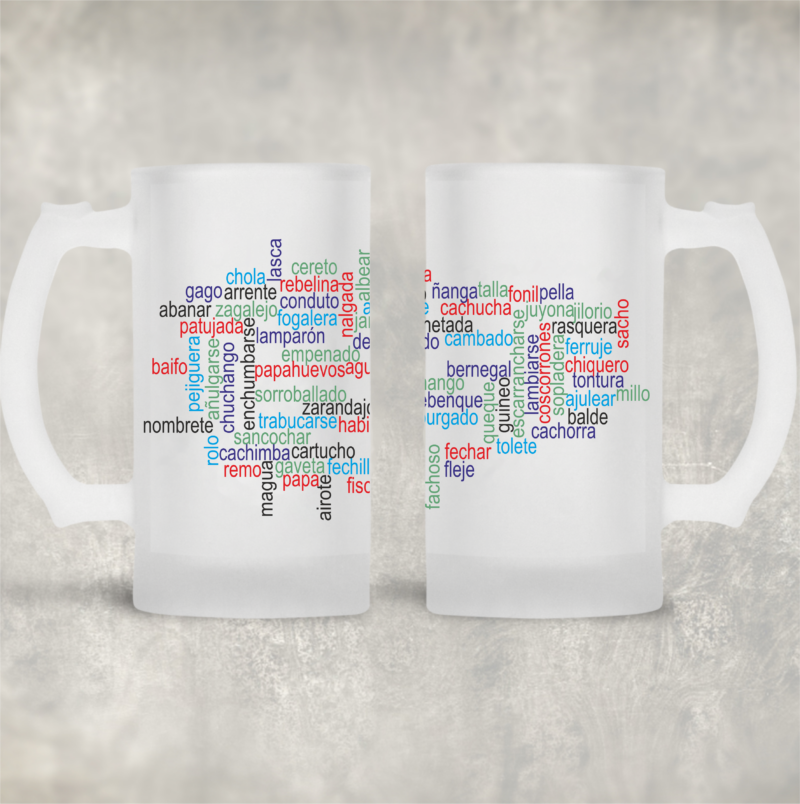 Jarra con palabras y expresiones típicas de Canarias. Un diseño colorido y divertido ideal como regalo original para amantes de las Islas y su cultura.